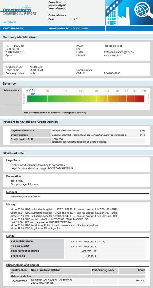 - Πιστοληπτική ικανότητα: δείκτης φερεγγυότητας Creditreform με επεξήγηση, πιθανότητα αθέτησης πληρωμών εντός των επόμενων δώδεκα μηνών κ.λπ.